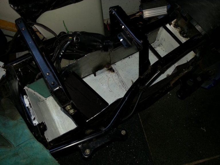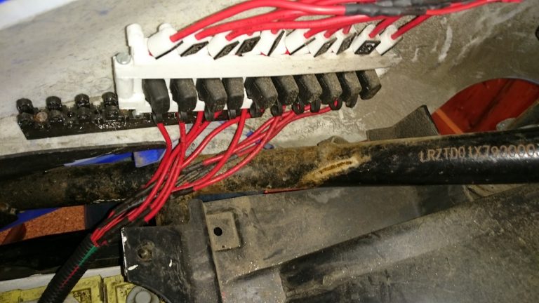 I increased the tension in the rear spring to compensate a little for the extra weight of the bigger batteries. Because I had spread the batteries over the length of the scooter, the handling actually improved – it became even more nimble. The ABS brakes didn’t have a problem coping with the extra weight. The controller also worked fine.