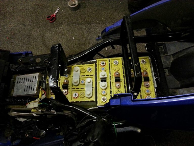 After test fitting the batteries in the scooter without connecting all of the batteries up yet, they looked like this: