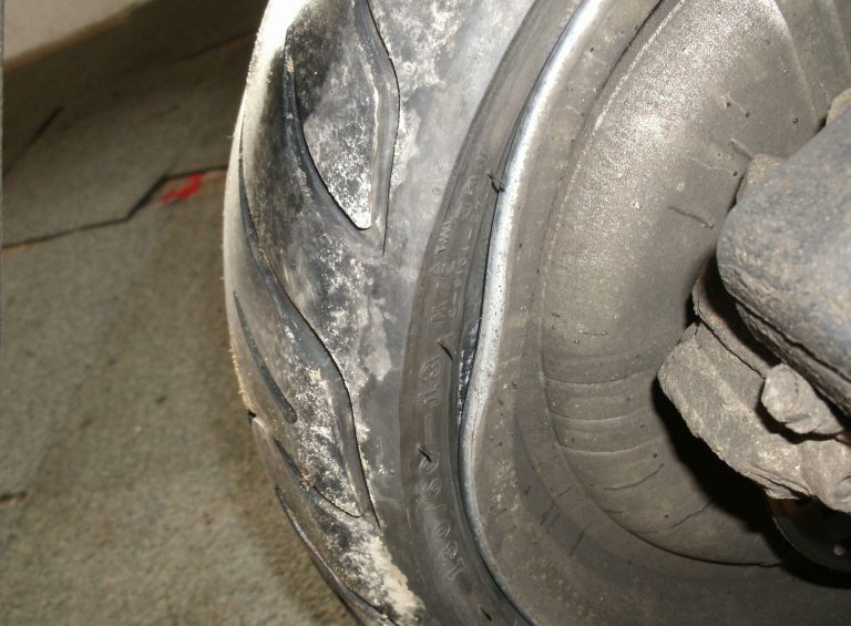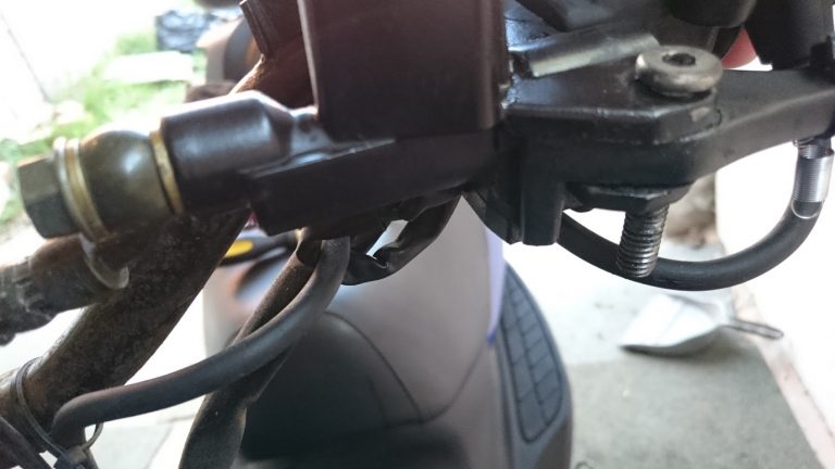 For a few years after fitting the new batteries I happily commuted to work on the electric scooter. The tyres were cheap to replace at about £25 the brake pads were about £10. I changed the brake pads occasionally but that was about it. So for a while it was pretty cheap commuting. Then one day, this happened: