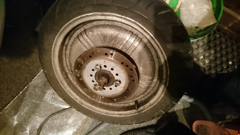 It turned out to be not too much of a problem as in the end I managed to bend the rim back fairly well and bought an inner tube for the tyre instead. However, I began to realise that if I wanted to keep this scooter for any length of time, the lack of dealer would be a problem. So I started to research similar scooters with parts that I might take. After a few months I found an advert on eBay for someone selling the whole scooter without batteries for pretty cheap. They didn’t really know what it was, so I made them an offer just for the back wheel and the controller. The scooter was in pretty bad condition apart from the back half so I didn’t want the whole thing and I was pretty sure I could get other parts.